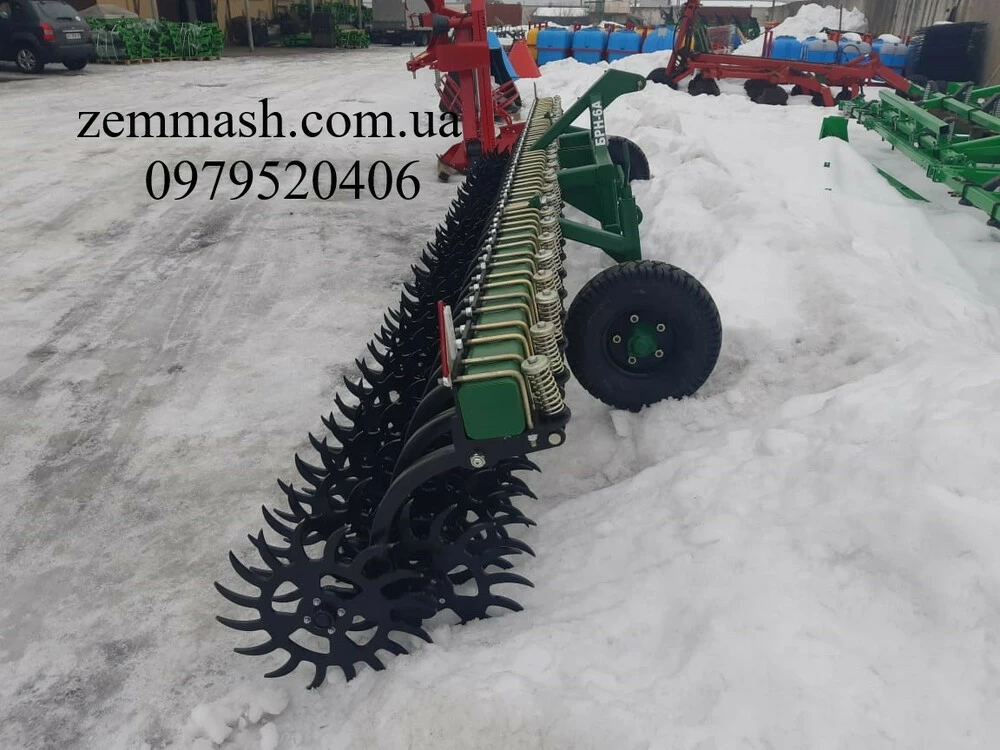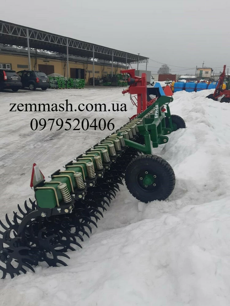 Борона роторная навесная (БРН-6А) предназначена для сплошной и междурядной обработки любых культур зерновых, сои, пропашных культур, овощей и т.д. и всех типов почв. Наряду с этим данное орудие применяется для механической борьбы с сорняком, заделки в почву пожнивных остатков.Качество обработки зависит от скорости агрегата, которая составляет от 12 до 20 км/час.